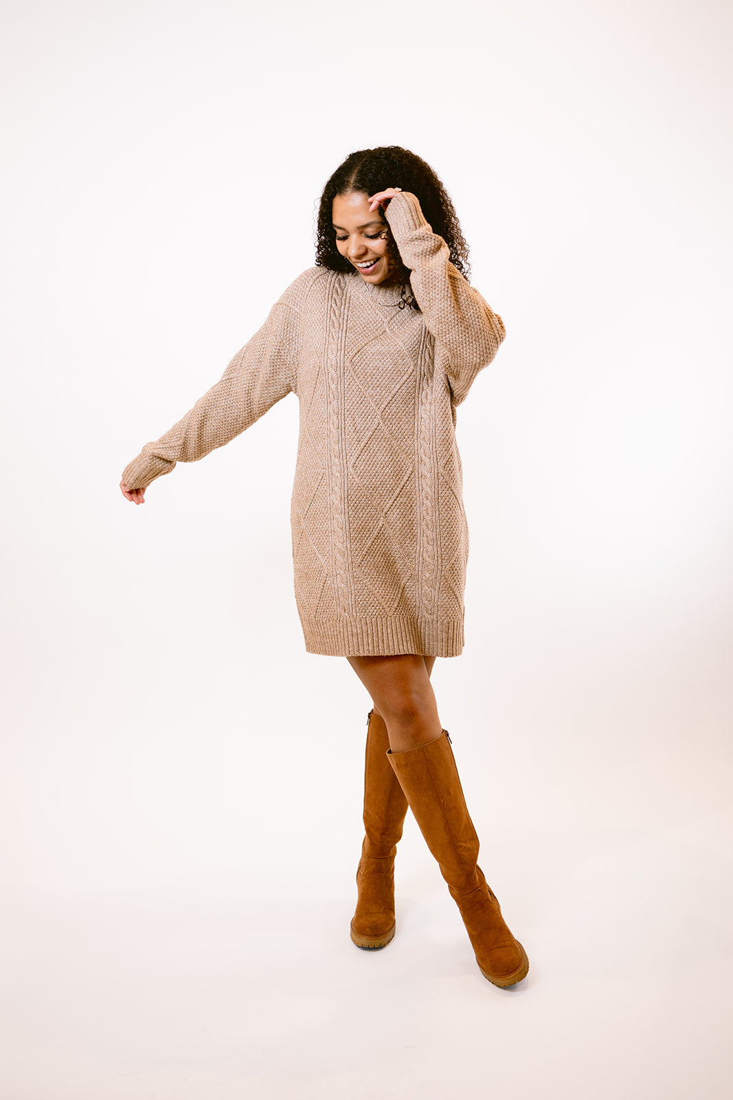 Knit Sweater Dress in Fawn