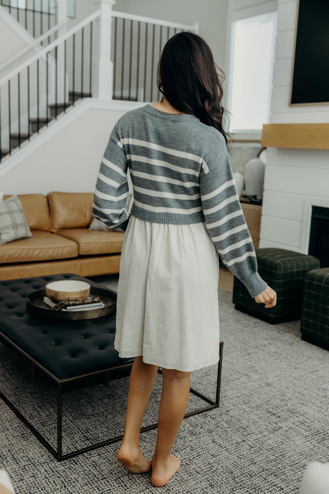 Cameron Striped Sweater Top Midi Dress